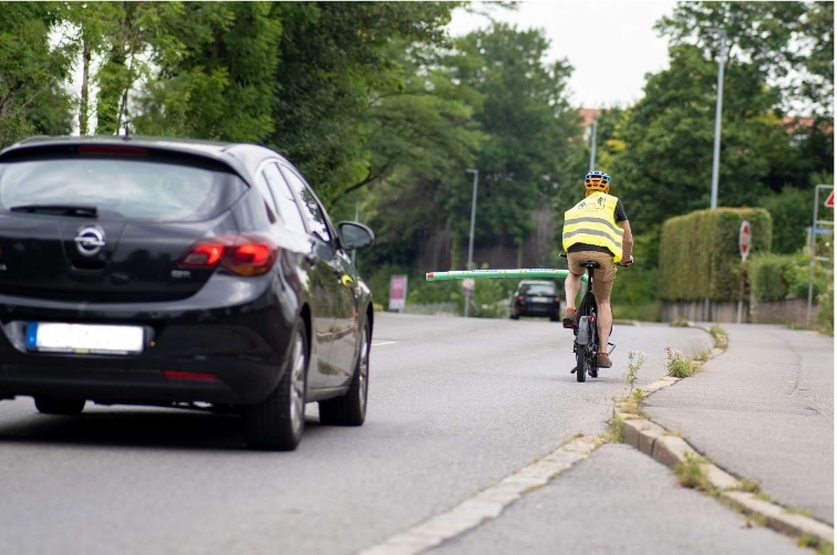 Bad Waldsee - Nichts hätte den Sicherheitsabstand von 1,5 m zwischen Fahrrad und Auto deutlicher machen können als die bewegliche Schaumstoffstange, mit der Radfahrende am Samstag, 23. Juli bei der Veranstaltung der Grünen durch Waldsees Straßen fuhren.