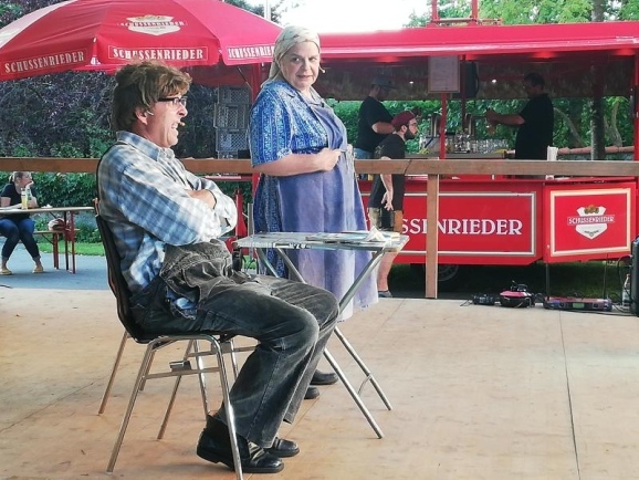 Michelwinnaden - Über das tolle Wetter und die lauen Sommerabendtemperaturen freuten sich die Besucher des Kabarett-Abend anlässlich des Burggrabenfestes in Michelwinnaden. Das schöne Wetter machte es möglich, dass noch viele Fans von Hillu’s Herzdropfa den Kabarett-Abend besuchen konnten. Wie groß das Interesse am Auftritt der beiden Künstler von der Schwäbischen Alb war, zeigten die vielen wartenden Besucher, welche lange vor der Einlasszeit bereits nach Michelwinnaden gekommen waren.