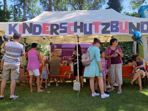 Bad Waldsee - Bei schönstem Wetter besuchten rund 300 Kinder den Stand des Kinderschutzbundes Bad Waldsee im Stadtgraben und bastelten mit vorbereitetem Material bunte Trinkbecher oder bauten aus Holzscheiben und Holzklötzen mit Hilfe von Heißwachspistolen originelle Autos, Traktoren und Motorräder.
