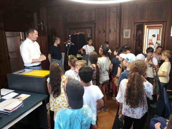 Bad Waldsee - Die Klasse 3a der Döchtbühlschule besuchte mit ihren Lehrern den Oberbürgermeister Henne, da sie sich gerade mit dem Thema Bad Waldsee beschäftigen. Sie trafen sich mit dem wichtigsten Mann der Stadt im Sitzungssaal im Rathaus, wo sie sogar Tagungsgetränke und zum Schluss einen Apfel bekamen.