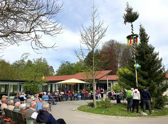 Bad Waldsee – Tradition wiederbelebt und Maibeginn gefeiert. Erstmals nach zweijähriger Corona-Pause ist am Freitag wieder ein Maibaum im Wohnpark am Schloss in Bad Waldsee gestellt worden. Dazu gab's unter freiem Frühlingshimmel musikalische Unterhaltung sowie Kaffee und Kuchen für die Bewohnerinnen und Bewohner des Pflegeheims.