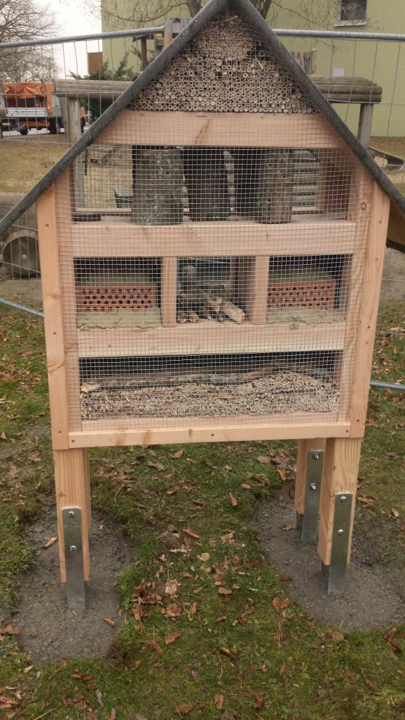 Haisterkirch - Nach langer Vorarbeit und Überwindung unerwarteter Hindernisse konnten am 15.3.22 endlich unsere von der Schreinerei Wirth/Bucher nach den Vorgaben des BUND liebevoll gefertigten Insektenhotels ihre Plätze bei Grundschule und Kindergarten Haisterkirch einnehmen.