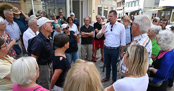 Bad Waldsee - Am Donnerstagnachmittag versammelten sich ca. 50 bis 60 Senioren und Seniorinnen am üblichen Seniorenspaziergangstreffpunkt an der Stadthalle. Helmut Brecht musste bei seiner Begrüßung die Gemüter beruhigen, denn etliche hatten den OB schon an der Stadthalle erwartet, gab es zur Umgestaltung des Grabenmühlplatzes doch viele Fragen und auch Unmut. „Jeder Häuslebauer wird angehalten, seine Flächen nicht zu versiegeln, und der Grabenmühlplatz wird zu einer einzigen Pflasterwüste“, so die Kritik.