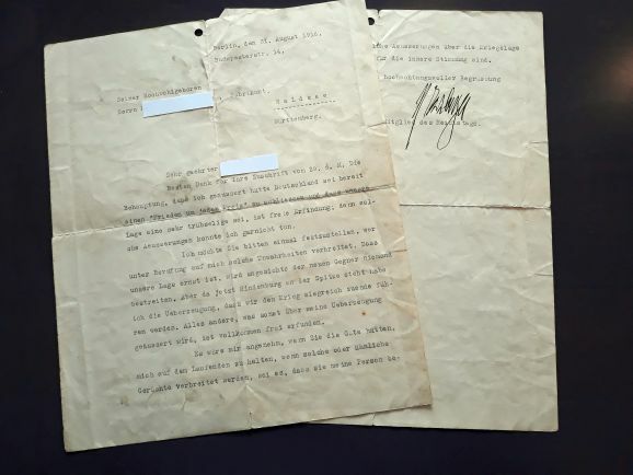 Bad Waldsee - Das Stadtarchiv Bad Walsee verfügt in seiner Sammlung auch über historische Briefe. Ein Beispiel ist dieser Brief von Matthias Erzberger. Er wurde an einen Waldseer Bürger adressiert, der Erzberger vorwarf, einen „Frieden um jeden Preis“ zu wollen, um den ersten Weltkrieg zu beenden. Matthias Erzberger wurde vor 100 Jahren ermordet.
