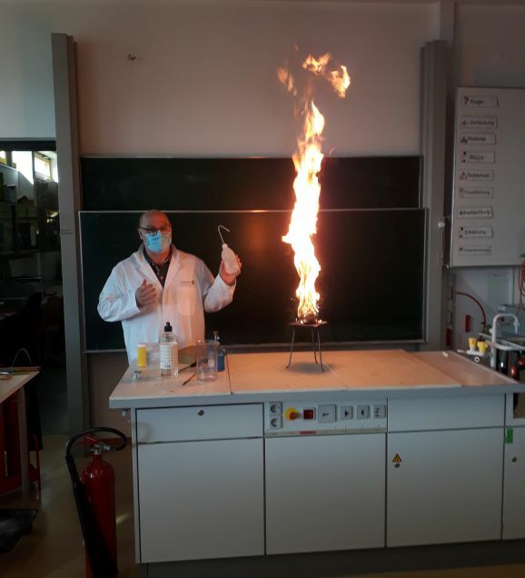 Bad Waldsee - Im Sachunterricht steht für die Viertklässler gerade das Thema Feuer auf dem Stundenplan und nach einigen eigenen Experimenten zum Feuer besuchten die Viertklässler mit ihrem Klassenlehrer Stefan Betz den Chemiesaal im Institut auf dem Döchtbühl. Chemielehrer Helmar Fischer führte dort einige Experimente dazu durch, die die Kinder so ganz sicher nicht machen dürfen, da es dabei gewaltig knallen, stinken und brennen kann.