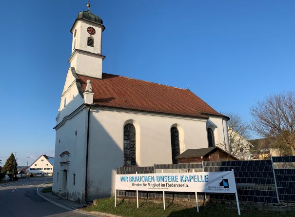 Bad Waldsee-Osterhofen - Der im letzten Jahr gegründete Förderverein Kapelle Osterhofen zeigt sich trotz Corona-Pandemie rührig. Mit zwei großen Bannern macht die Vorstandschaft auf das Kleinod mitten in Osterhofen aufmerksam, das seit mehr als zwei Jahren geschlossen ist. Der aufgedruckte Text zeigt an, dass die Kapelle gebraucht und vermisst wird.
