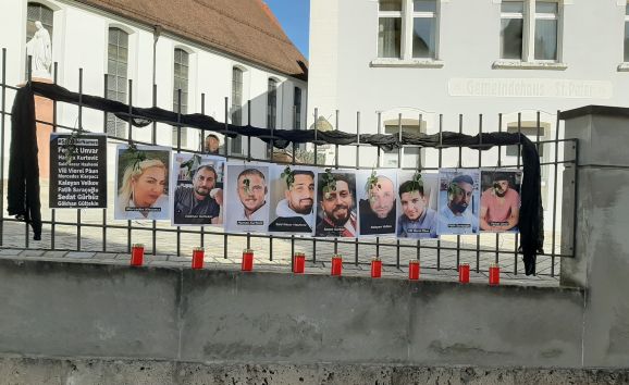 Bad Waldsee - Zum Jahrestag des rassistischen Terroranschlags in Hanau gedachten Mitglieder des GLOBAL e.V. am Gut-Betha-Platz und Kirchplatz der neun Opfer. Mit Trauerflor, Kerzen, Rosen, Fotos der Ermordeten und den beiden Schriftzügen „Ein Jahr Hanau“ und „Rassismus tötet“ brachten sie ihre Trauer um die Opfer und ihr Mitgefühl mit den Familien zum Ausdruck.