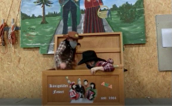 Bad Waldsee-Mittelurbach - Die Mäschkerle der Königstäler Narren, die beim Fasnetsvergraben 2020 in die Fasnetskiste eingemottet wurden, sind trotz Corona gesund aus der Kiste entstiegen. Leider mussten sie verkünden, dass es leider dieses Jahr keine öffentliche Fasnet geben kann. (Mit Video)