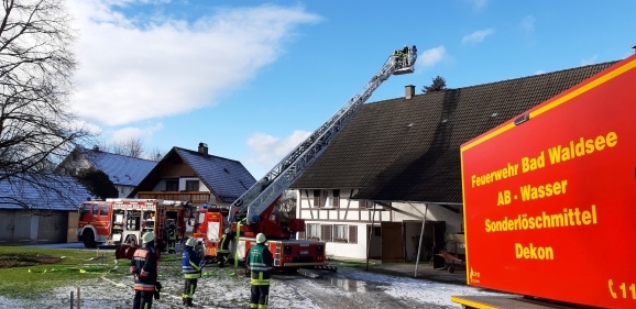 Gaisbeuren - Zu einem Kaminbrand kam es am Dienstagmittag im Bad Waldseer Teilort Gaisbeuren. Anrufer meldeten eine starke Rauchentwicklung und Funkenflug aus dem Kamin eines ehem. Bauernhauses in der St. Leonhard Straße. Um 11.35Uhr erfolgte die Alarmierung der Feuerwehr Bad Waldsee mit den Abt. Reute-Gaisbeuren und Stadt.