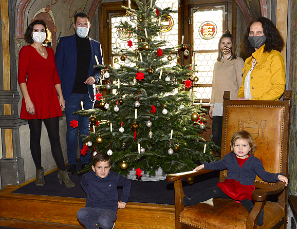 Bad Waldsee - Auch das Dienstzimmer von Bürgermeister Matthias Henne im Rathaus ist jetzt vorweihnachtlich dekoriert. Die Kinder der Lerchengruppe des Eugen-Bolz-Kindergartens hatten dafür rote Filzsterne gebastelt und Christbaumkugeln mit Elchen verziert.