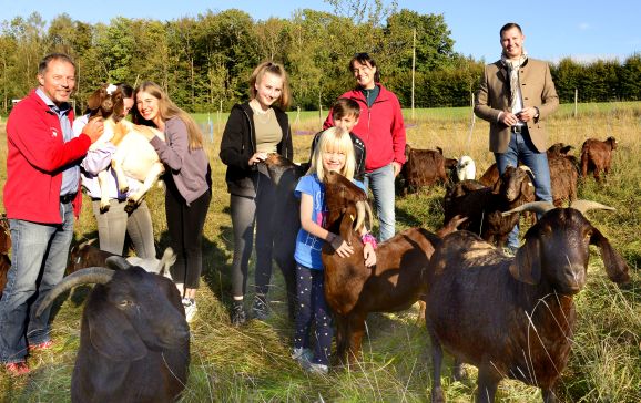 Bad Waldsee - „Rent a Goiss“ – übersetzt: Ziegen mieten zur Landschaftspflege – diesen Weg geht die Stadt Bad Waldsee bei der Nutzung ihrer Streuobstwiese mit 74 jungen Obstbäumen in Hittisweiler. Auch aus ökologischen Gründen und aus Rücksicht auf die Insekten wurde das Gras der Obstwiese in diesem Jahr nicht gemäht. Dennoch wird es keinen Wildwuchs gegeben: Denn seit kurzem beweiden die 30 Ziegen der Familie Wolf aus Unterurbach die Wiese.