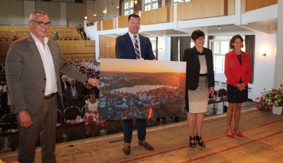 Bad Waldsee – 115 Tage nach seinem Amtsantritt wurde Matthias Henne am Mittwochabend nun auch ganz offiziell als Stadtoberhaupt verpflichtet und vereidigt. Unter Anwesenheit des Gemeinderates, Vertreter der Stadtverwaltung, des Gemeindetages, der örtlichen Kirchen und des Landkreises sowie der Familie Henne, geladener Ehrengäste und einigen Zuschauern der öffentlichen Gemeinderatssitzung legte Matthias Henne seinen Diensteid in der Bad Waldseer Stadthalle – unter strengen Hygienevorkehrungen – ab. Sein Amtsvorgänger, Bürgermeister a. D. Roland Weinschenk, ließ sich entschuldigen, da er sich im Urlaub befindet.
