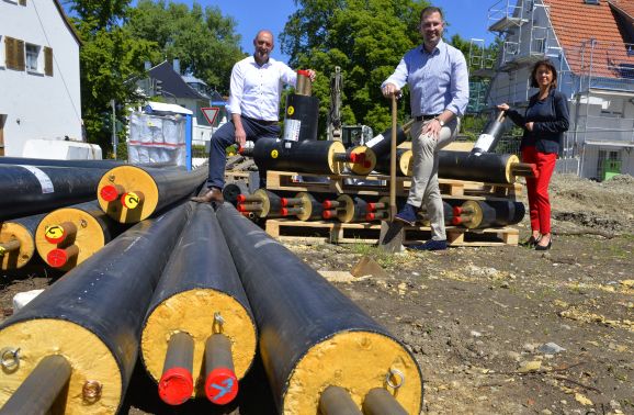 Bad Waldsee - Nachdem die neue Führungsspitze im Bad Waldseer Rathaus mit Bürgermeister Matthias Henne und der Ersten Beigeordneten Monika Ludy nun komplett besetzt ist, hat Bürgermeister Matthias Henne auch in seiner Funktion als Aufsichtsratsvorsitzender gemeinsam mit dem Geschäftsführer der Stadtwerke, Manfred Erne, zum symbolischen ersten Spatenstich für die Verlegung der Nahwärme- und Breitbandleitungen in der Innenstadt eingeladen.