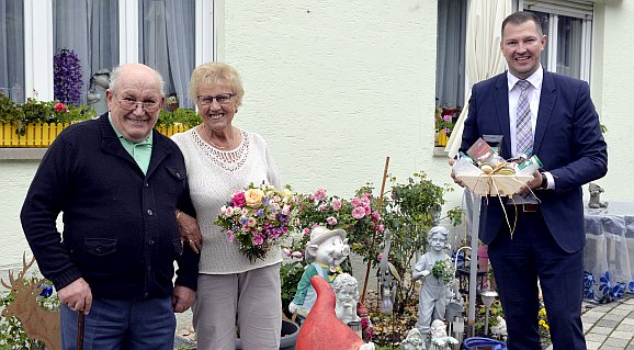 Bad Waldsee - Das außergewöhnliche Jubiläum der Diamantenen Hochzeit konnten in der vergangenen Woche Oswina und Karl Dachs feiern. Bürgermeister Matthias Henne stattete dem Jubelpaar einen Besuch ab, gratulierte herzlich und überreichte einen Geschenkkorb mit regionalen und fair gehandelten Produkten, zwei Citybus-Fahrscheine, eine Glückwunschkarte von Ministerpräsident Winfried Kretschmann und eine Glückwunschkarte der Stadt Bad Waldsee.