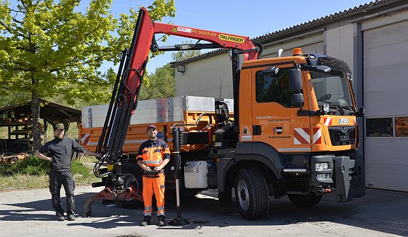 Bad Waldsee - Nach fast eineinhalb Jahren konnten die Mitarbeiter des städtischen Baubetriebshofs den so dringend benötigten neuen 15-Tonnen-Lastwagen mit Ladekran, Kipper-Pritsche und so genannter Kommunalhydraulik in Betrieb nehmen.
