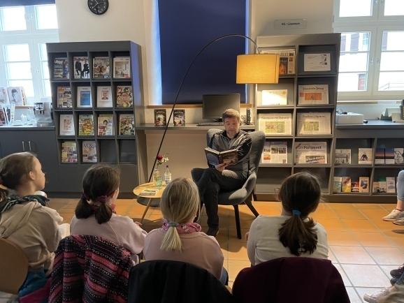Bad Waldsee - Die Stadtbücherei veranstaltet immer wieder Lesungen und diesmal war Roman- und Kinderbuchautor Markus Orths zu Gast. Vor neugierigen Viertklässlern vom Döchtbühl und aus Haisterkirch las er aus seinem Buch „Baddabamba und die Insel der Zeit“ vor und schaffte es, die Zuhörer mitzunehmen in seine fantasievolle Geschichte, in der es von seltsamen Wesen nur so wimmelt.