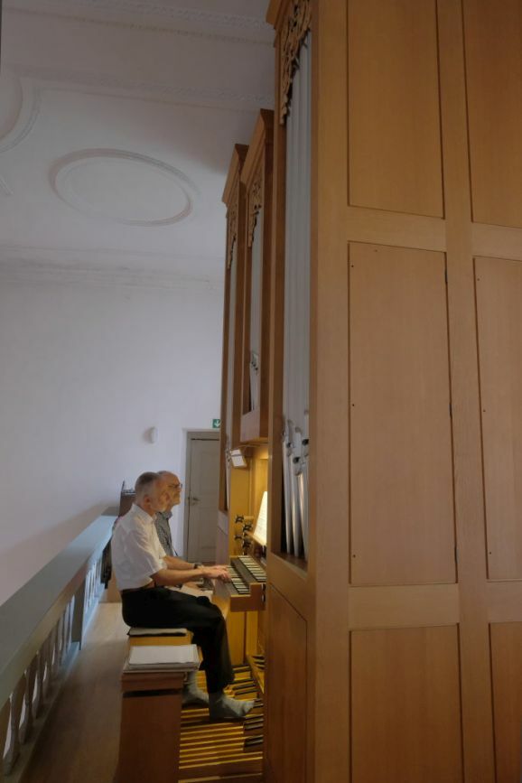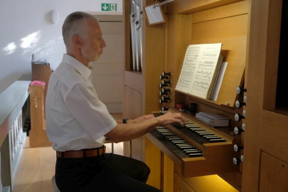 Ehe Robert Häusle sein Konzert fortsetzte mi Girolamo Frescobaldi´s „Aria detta la Frescobalda“ fortsetzte, eilte die Treppe von der Orgel hinunter in den Chorraum, um den Konzertbesuchern die Stückauswahl und ihre besondere Beziehung und Geschichte zu Pater Paulus zu erläutern. Das Frescobaldi Stück aus dem Frühbarock hatte Häusle bei einem Konzert des Kirchenchores auf dem Konzertflügel gespielt. Nun erfüllte er posthum den Wunsch von Paulus: „Das nächste mal spielst du es auf der Orgel!“ Das nächste Mal war nun an diesem 01.Juli 2022....