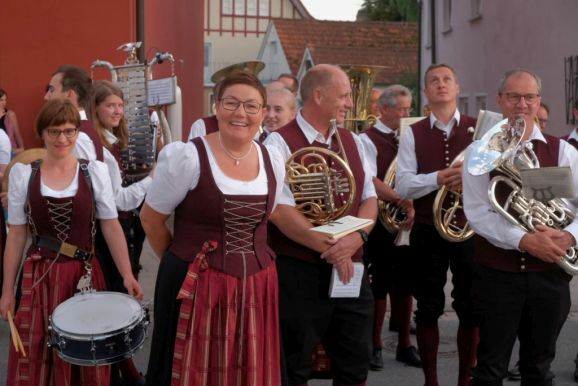 Zum Abschluss in St. Verena spielte die Stadtkapelle nach dem Schluss Segen und dem feierlichen „Großer Gott“ noch zwei weitere Stücke: Den irischen Segenswunsch „Möge die Straße uns zusammenführen“ und „Guten Abend, gute Nacht“ mit der Folge, dass die Kirche bis zum Verklingen des letzten Tones noch vollbesetzt blieb.