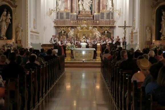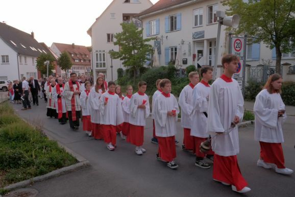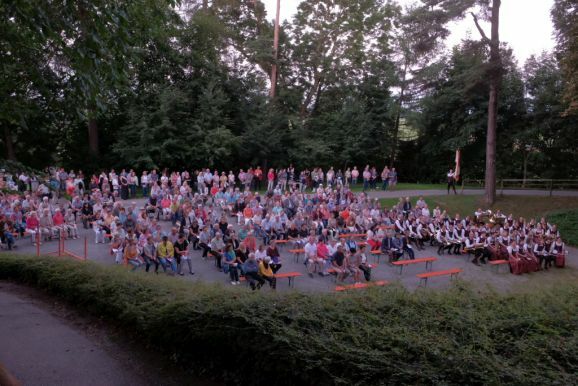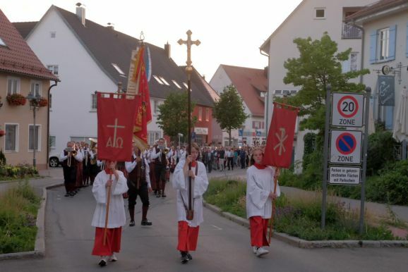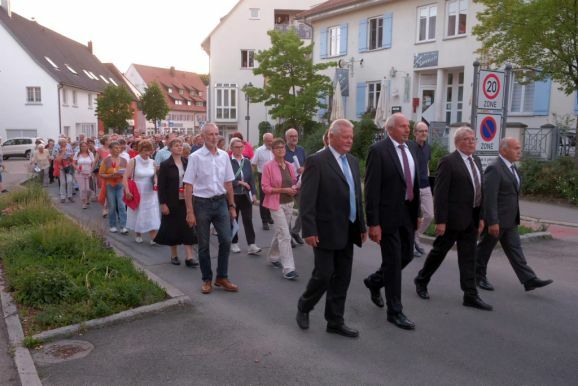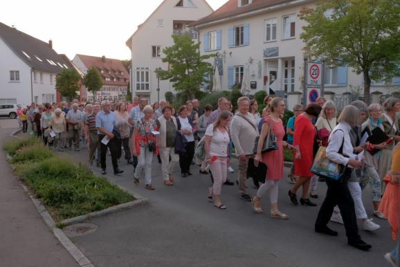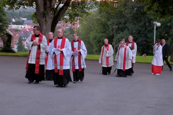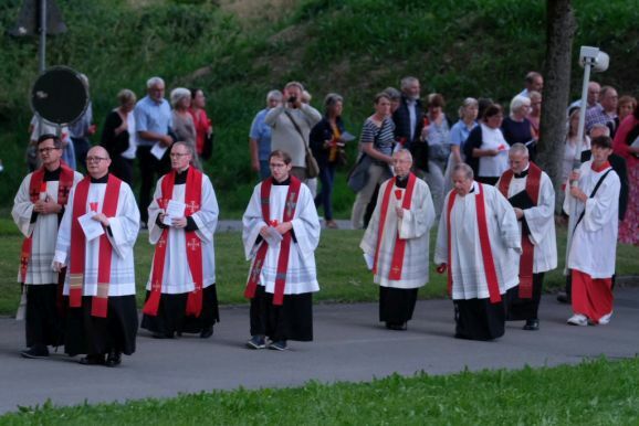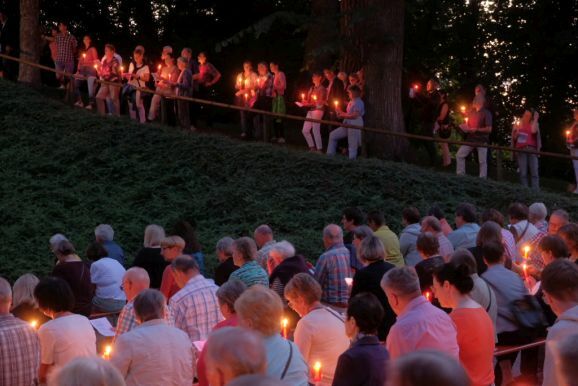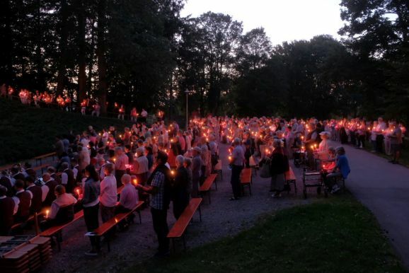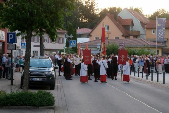 Soviele Gläubige wie seit vielen Jahren nicht mehr folgten am Sonnntagabend der Stadtkapelle und dem Kirchenchor hinauf zum Gottesberg, wo sich Pater Superior in seiner Begrüßung über den großen Zuspruch freute. „Es liegt etwas Leichtes über diesem Abend.“