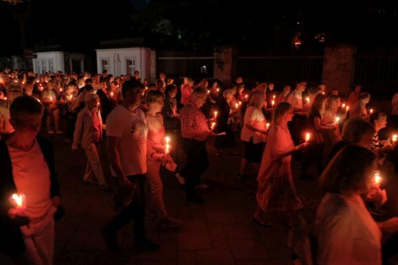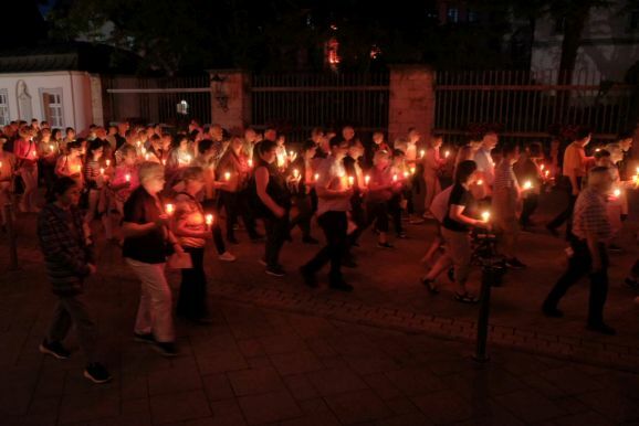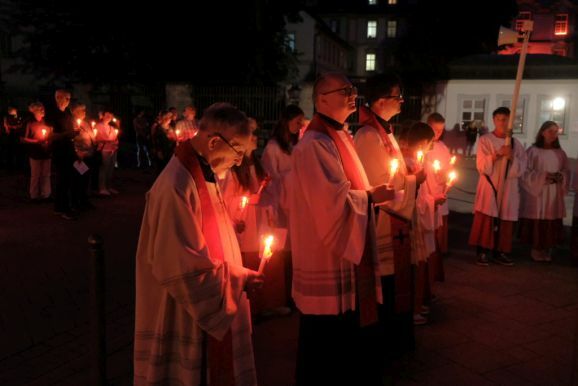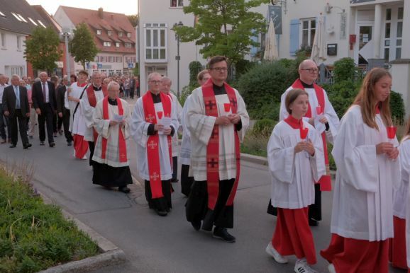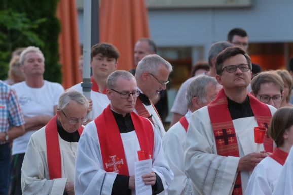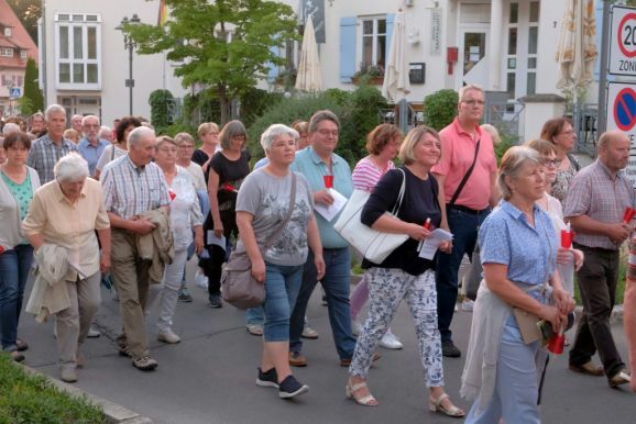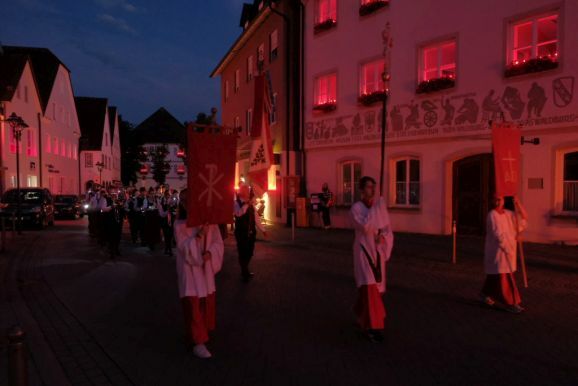 Nach nunmehr vier Jahren – zweimal war sie wegen schlechten Wetters in die Kirche verlegt worden und danach war Corona gekommen – konnten die Gläubigen erstmals wieder eine richtige Lichterprozession hinauf zum Gottesberg und zurück in die Stadt feiern, die damit einen schönen Auftakt in die Festwoche des Heilig-Blut-Festes bildete. „Schön war´s“ resümierte denn auch Pfarrer Stefan Maier kurz und knackig das jedes Jahr die Herzen höherschlagen lassende Erlebnis.