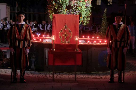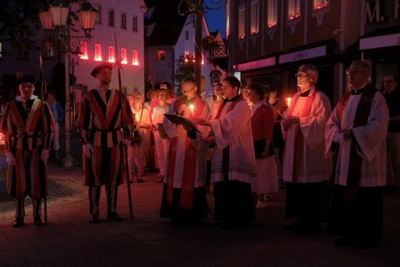 Bad Wurzach - Seit 250 Jahren wird die Heiligblutreliquie auf dem Gottesberg verehrt. Stadtpfarrer Stefan Maier nahm seine Festpredigt bei der diesjährigen Lichterprozession, die seit 1933 jeweils den Auftakt für das Heiligblutfest bildet, zum Anlass, das Erlebnis „Gottesberg und Heiligblutreliquie“ aus der Sichtweise eines Nicht -Einheimischen zu betrachten