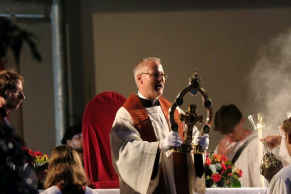 Das Herausragendste sei jedoch die Heilig-Blut-Reliquie, die seit 1764 hier aufbewahrt wird. Dabei dürfe man nicht an der ansprechenden und wertvollen Reliquienmonstranz hängenbleiben oder beim Betrachten eines kleinen Stückchens blutgetränkten Stoffes. „Nur wenn ich hinter dieses Vordergründige, Gegenständliche blicken kann, wenn ich dahinter im Glauben die Liebe Gottes und das Geschenk unserer Erlösung erkennen kann, werde ich erahnen wie bedeutsam diese Reliquie ist: auf dieser Ebene, die so viel mit mir zu tun hat.