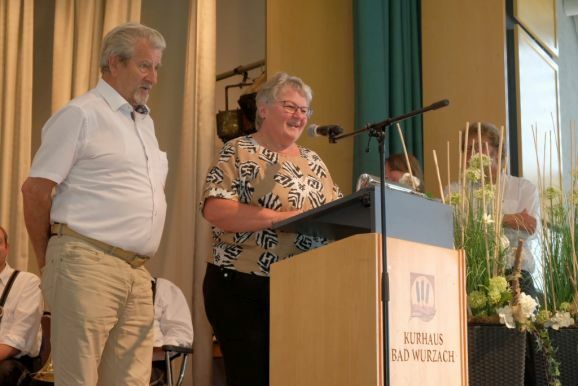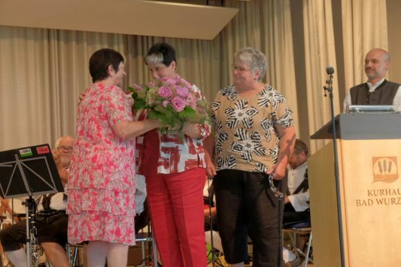 Nach einer kurzen Umbaupause nahm dann die Bauernkapelle Oberschwaben unter der Leitung von Eugen Maucher auf der Bühne Platz. Die beiden Vorständinnen Conny Branz und Christine Dorn-Bohner begrüßten nach deren erstem Stück die Ehrengäste, wie etwa die Bad Wurzacher Bürgermeisterin Alexandra Scherer, in vertretung des Landrates den Leiter des Landwirtschaftamtes und Fachschulleiter Albrecht Siegel, den Vorsitzenden des Kreisbauernverbandes Franz Schönberger, den langjährigen Vorstand des VLF Leutkirch, Franz Krug oder Stefan Käppeler, den Vorsitzenden des Landesbezirksverbandes.