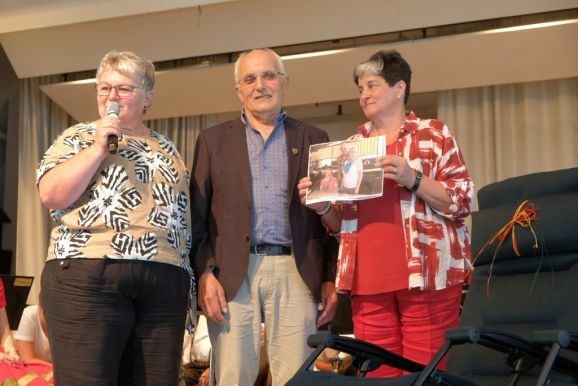 Stefan Käppeler, Vorsitzender des Landesbezirksverbandes hatte die große Ehre, Hans Frick für seine Verdienste um den VLF mit der goldenen Ehrennadel des Verbandes auszuzeichnen. In seiner Laudatio lobte er Frick, der bei den Sommerfesten immer etwas besonders gemacht habe und für jeden ein offenes Ohr gehabt habe.