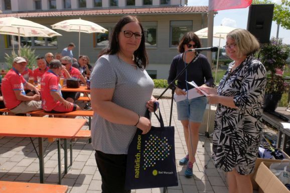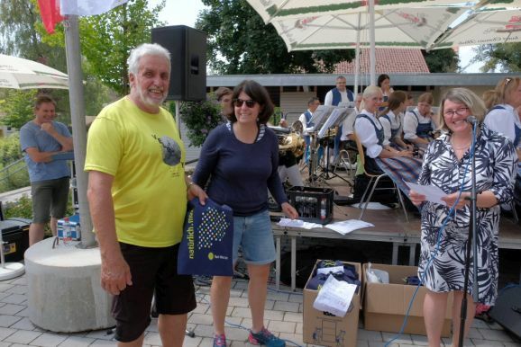 Wo könnte die Siegerehrung fürs Stadtradeln besser aufgehoben sein als bei einem Rad- und Wandertag? Stolz verkündete die Bürgermeisterin das Ergebnis: „Bad Wurzach belegt von 26 Kommunen im Landkreis Platz vier hinter Ravensburg, Altshausen und Leutkirch. Die 705 Radler in 31 Teams legten 182.491 Kilometer im festgelegten Zeitraum mit dem Rad zurück und konnten so den Ausstoß von 28 Tonnen CO2 vermeiden.“