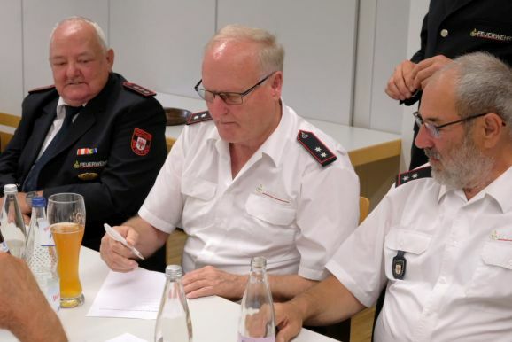 Im Anschluss an die Wahlen erhielten die Gewählten die von Heike Hierlemann und Jürgen Herdrich vorbereiteten Urkunden überreicht, wofür sich Rolf Butscher herzlich bei ihnen bedankte. Ebenso bei dem Bewirtungsteam, das an diesem Abend vor allem aus Abteilungskommandanten bestand sowie dem Wirt des Florianstübles, Manfred Pätzold und seiner Frau.