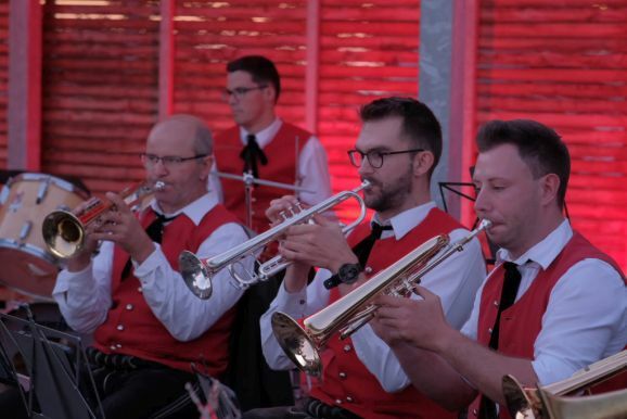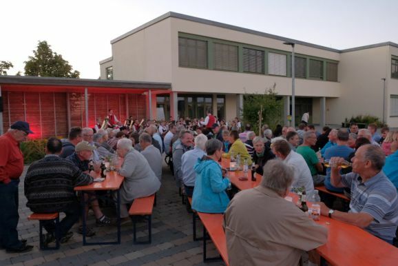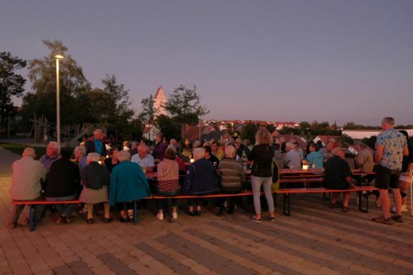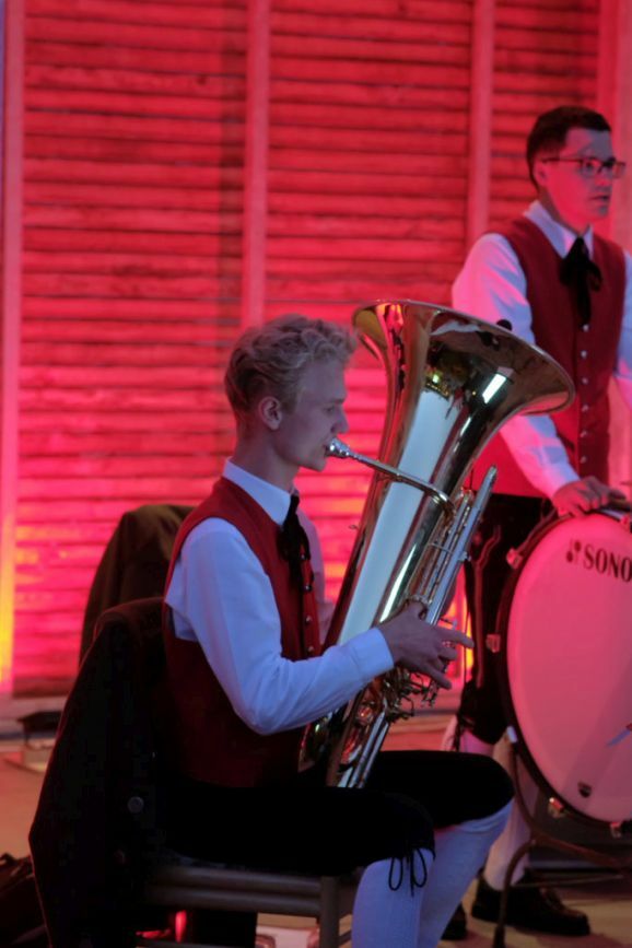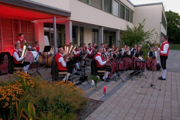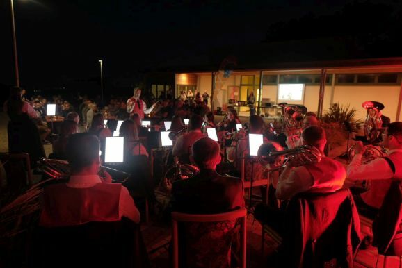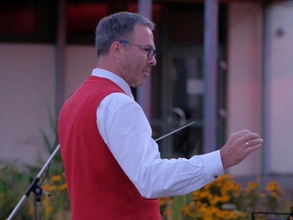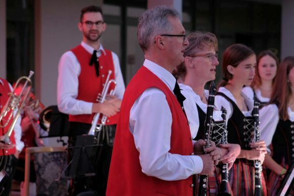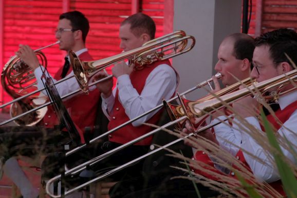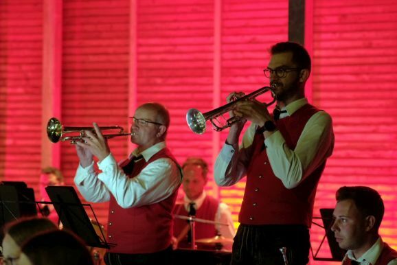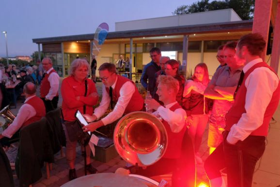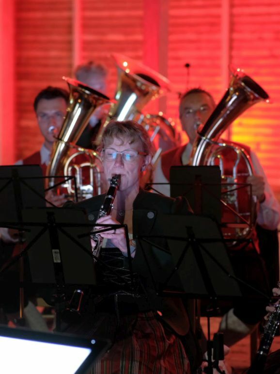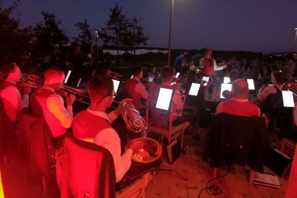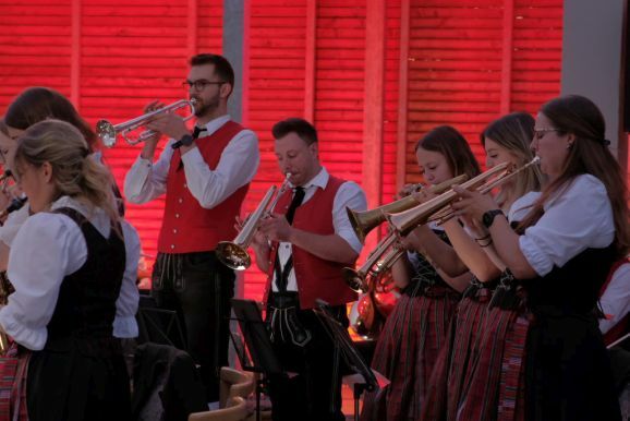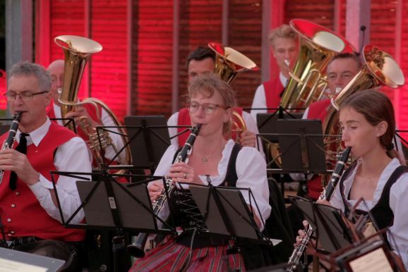 Dirigent Bernd Butscher hatte für den Dämmerschoppen neben den vielgespielten Klassikern wie Böhmischer Traum, Dem Land Tirol die Treue oder Ewig Schad seinen MusikerInnen auch einige Stücke aufs Tablet geladen, die z.T. erst in den vergangenen beiden Jahren herausgekommen sind und bisher nur von wenigen Kapellen gespielt wurden, etwa Der Märchenkönig, Bergliebe oder Meine Heimat bist nur Du. War die hereineinbrechende Nacht vor einem Jahr noch ein Problem für die Musiker, so konnten sie jetzt problemlos eine Stunde länger spielen...