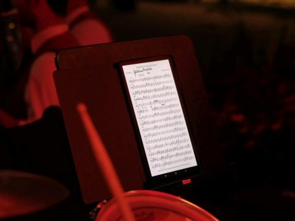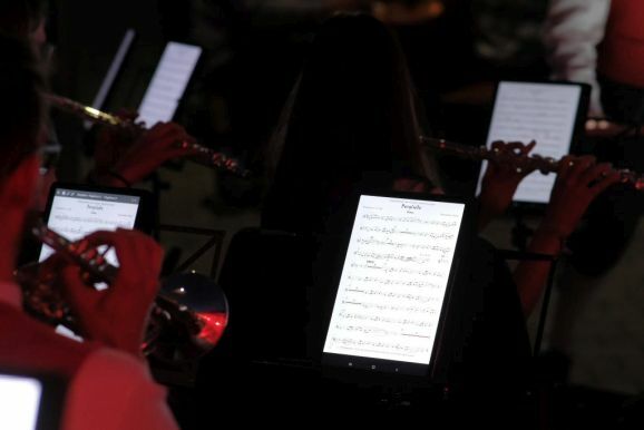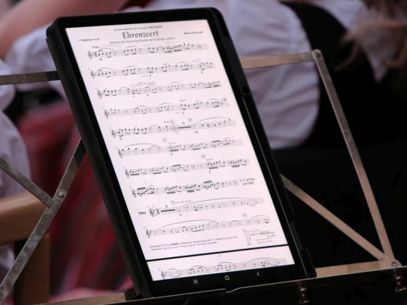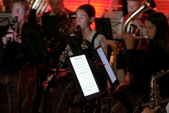 Florian Straub, der während des Konzertes neben den Ansagen zu den einzelnen Stücken auch peu á peu das Projekt „MK Eggmannsried goes digital“ erläuterte, kennt bisher kaum Musikkapellen oder Orchester die bisher mit Tablet musizieren. Spontan fiel ihm nur der Musikverein Hohentengen ein, wobei dieser nur ein Minitablet fürs Marschieren nutzt.
