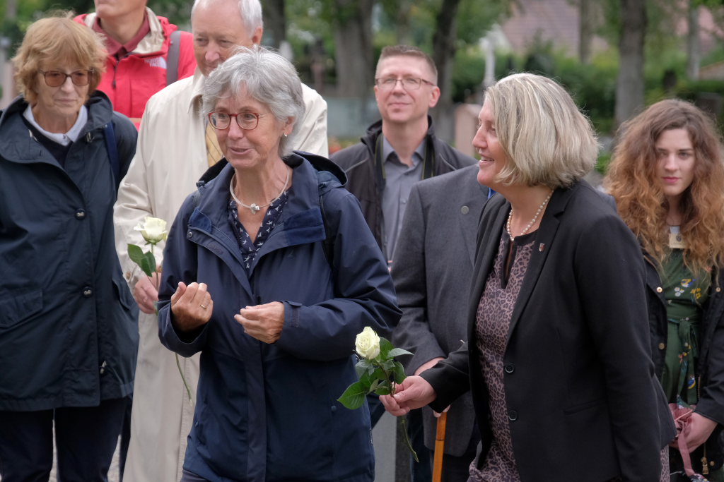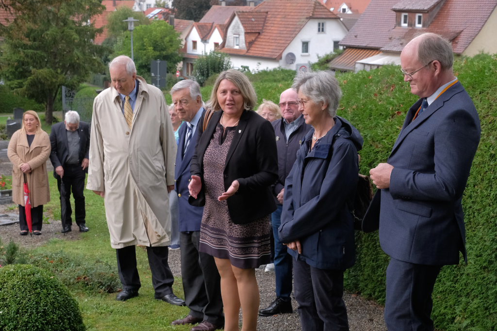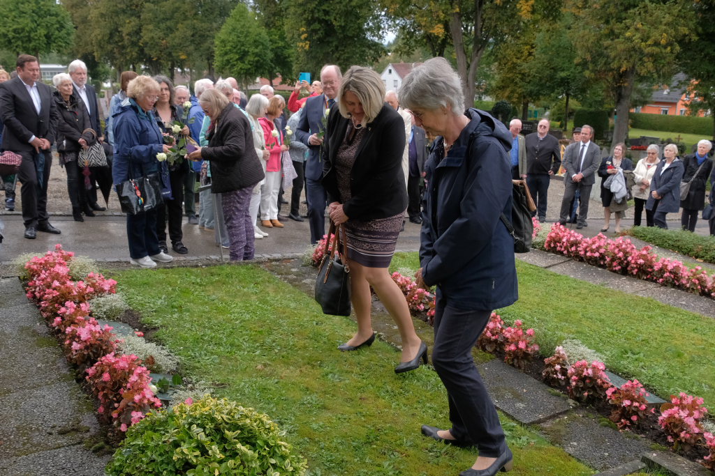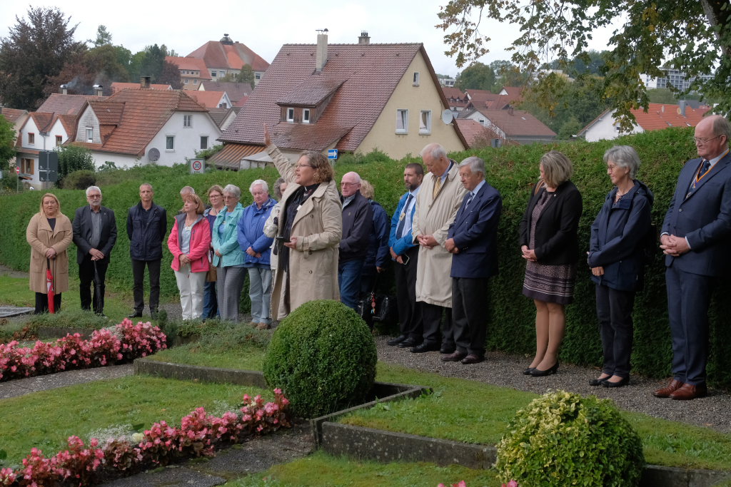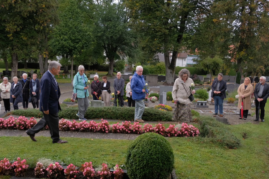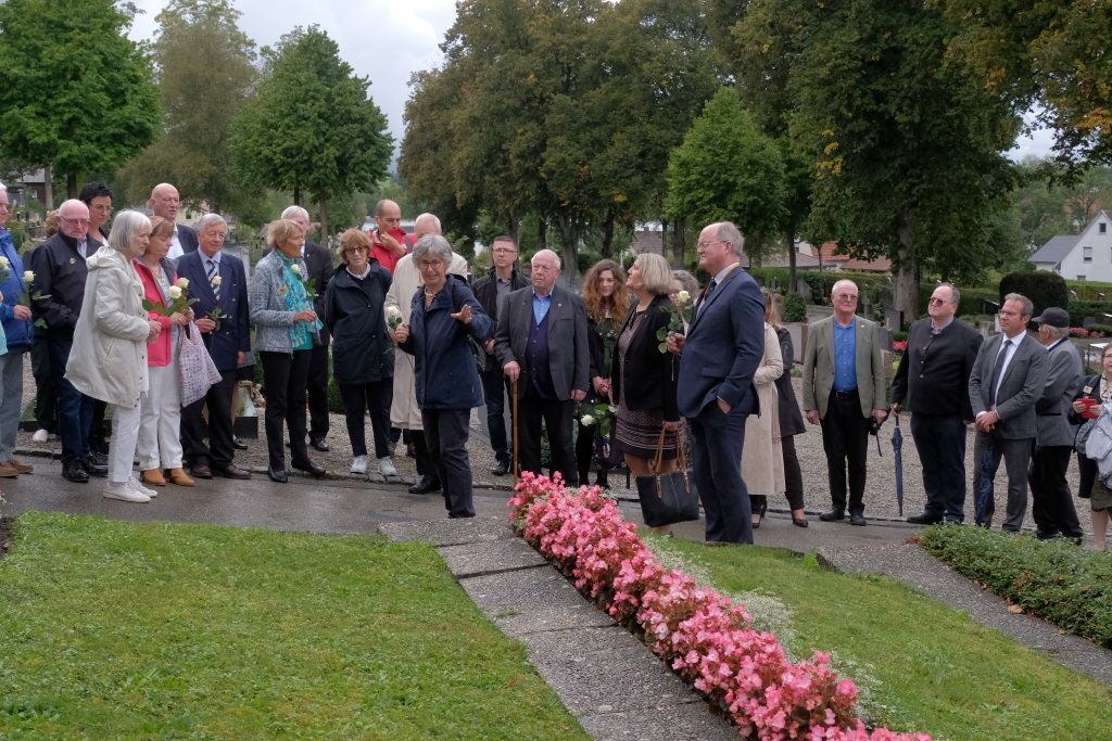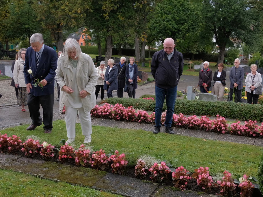 Nach dem St. Anthony Choral von Joseph Haydn ging es zu den Gräbern der in Wurzach verstorbenen Internierten, wo Scherer und Crowcroft sowie die ehemaligen Internierten bzw. ihre Angehörigen jeweils eine weiße Rose auf den Gräbern ablegten, ehe Reverend Sarah McClalland mit dem Segen die Gedenkfeier beendete.
