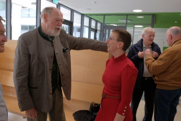 Amann kritisiert aber auch die Politik: Die Geräte alleine anzuschaffen sei nicht ausreichend, was dazu gehöre, seien auch das Fachpersonal, sprich die Ausstattung mit genügend Lehrern. Denn so kam auch der langjährige Mathematiklehrer Karl Guter mit seinen 71 Lenzen zu einem überraschenden Comeback: Nachdem alle Oberstufenpläne fertig waren, ergab sich eine Personallücke (Schwangerschaft einer Kollegin). Nach den aktuell geltenden Corona-Regeln hieß das: Sofortige Beendigung der Lehrtätigkeit. Und weil alle anderen Lehrer bereits verplant waren, wurde Guter aus seinem wohlverdienten Ruhestand geholt.