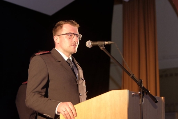 Pascal Schmehl, der zu der Gründungszeit noch gar nicht geboren war, setzte seine Ausführungen zur Geschichte der Nachwuchswehr nach den beiden Grußworten fort: Im Juli 1982 hatte der Nachwuchs bei der Segnung der Drehleiter seinen ersten Auftritt und bereits im zweiten Jahr bei einer Personensuche im Ried ihren ersten „echten“ Einsatz. Neben Werten wie Respekt und Toleranz biete die Jugendfeuerwehr aber noch mehr: Geselligkeit bei Ausflügen und sportlichen Wettkämpfen. Und Fachkompetenz bei Leistungsabzeichen und Orientierungsläufen oder bei Festen wie Fronleichnam oder Bluttritt.