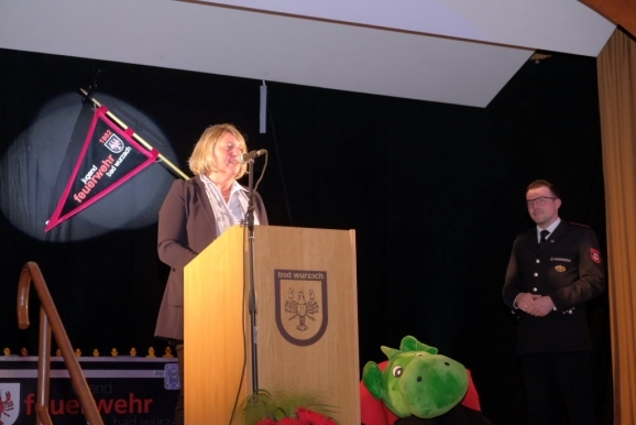 Bürgermeisterin Alexandra Scherer sagte in Ihrem Grußwort, dies sei der Verdienst von Schmehl und seinem Team, die Jugendlichen an die vielfältigen Aufgaben heranzuführen. Und die bei einigen Gelegenheiten wie Fit-Fun-Shopping Tag u.ä. ihr Können schon unter Beweis stellen konnten. Besonders habe sie gefreut zu hören, dass sie ihren Jugendraum in Eigenleistung renoviert hatten. Dafür erhielt Pascal Schmehl einen Bad Wurzach Gutschein als Geschenk.