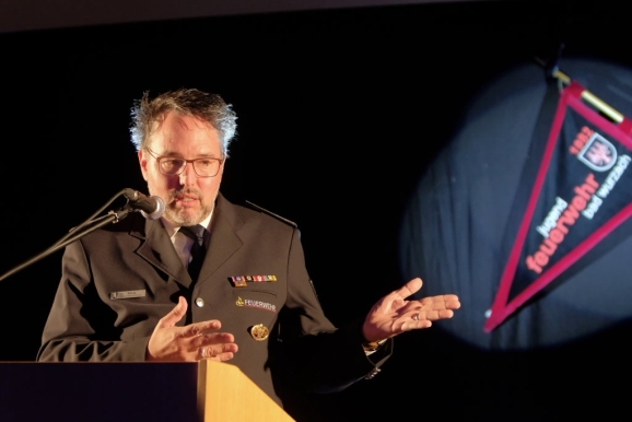 Kommandant Rolf Butscher sagte: „Der Weitblick der Gründer trägt Früchte: Heute sind drei Generationen im Feuerwehrhaus Bad Wurzach aktiv. 80-85 % der Aktiven kommen aus der Jugendfeuerwehr. Die Jugendfeuerwehrler von heute sind die Aktiven von Morgen.“ Er dankte allen bisherigen Jugendwarten, die neben ihrem eigenen aktiven Dienst alle 14 Tage auch noch die Proben des Nachwuchses organisierten. Sein Dank ging aber auch an die Stadt, an die Bürgermeisterin und an Heike Hierlemann, die für alle Anliegen der Feuerwehr stets ein offenes Ohr habe.