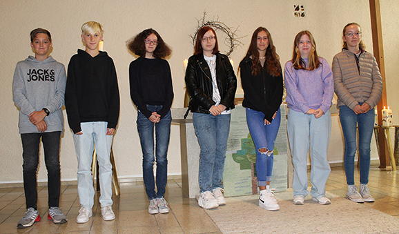 In ihrer Begrüßung stellte Pfarrerin Silke Kuczera fest, dass Taufe und Konfirmation ganz eng zusammen gehören; denn in der Taufe sagen die Eltern und Paten „ja“ zu Gott, bei der Konfirmation tun dies die Jugendlichen, die mit 14 Jahren in der Kirche als erwachsen gelten, selbst. Die Taufe wurde von Prädikantin Astrid Greshake vollzogen, wobei es ein neues Element in der evangelischen Kirche gibt, nämlich den Taufbaum; er stammt aus dem KBZO in Weingarten, wurde beim Wiesenfest verschönert und bekommt nun bei jeder Taufe einen hölzernen Apfel mit dem Namen des Getauften angehängt.