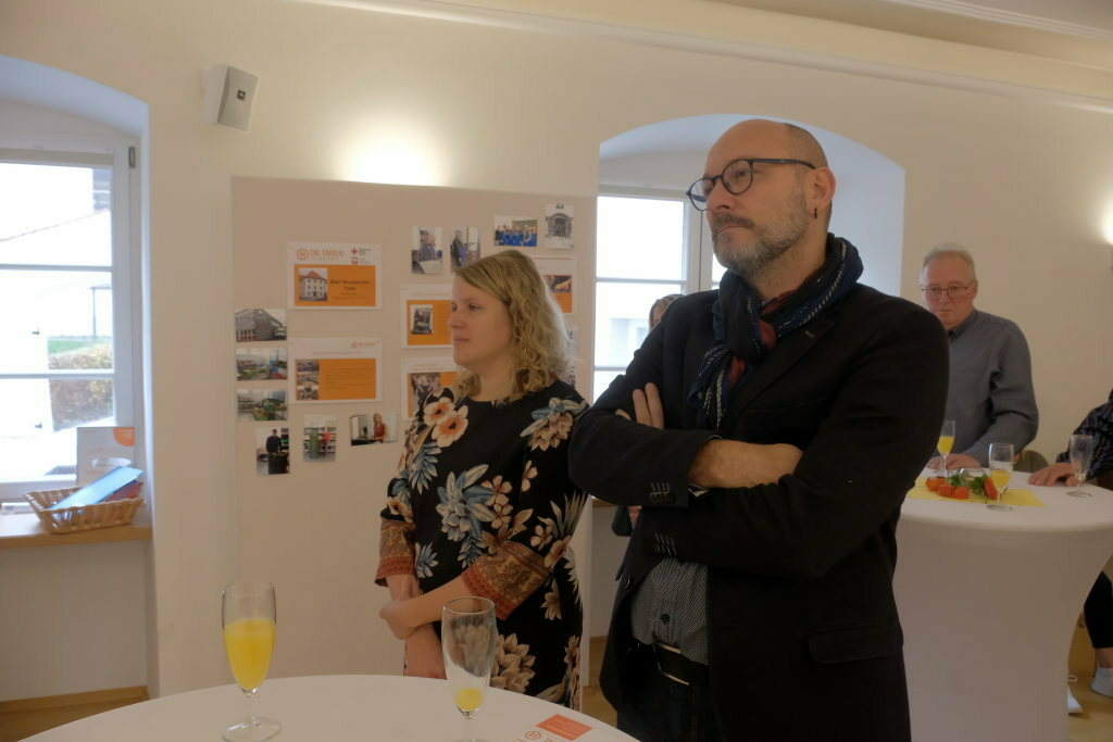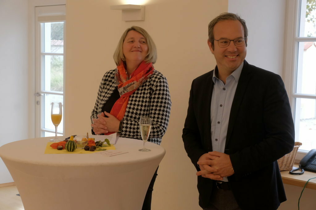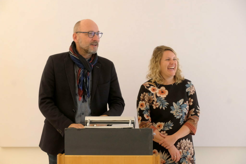 Die evangelische Pfarrerin Silke Kuczera und Pastoralreferent Matthias Winstel brachten – nachdem zuvor „die geballte theologische Kompetenz“ vieles vorweggenommen hatte – ebenfalls das Evangeliumswort Matthäus 25 ins Spiel: „Was ihr dem geringsten meiner Brüder getan habt, habt ihr mir getan.“ Sie sprachen in ihrem Grußwort von der Institution Tafel, deren Ehrenamtlichen nicht nur mit Lebensmittel körperlich helfe, sondern durch ihr Zuhören den Menschen auch psychologisch helfe. „Heide Prutscher wird nicht müde, mich immer auf das Spendenkässle in der evangelischen Kirche aufmerksam zu machen, “ sagte Kuczera und Matthias Winstel ergänzte, dass es bei der katholischen Kirche im Jahr vier Tafelwochen gebe. Bezugnehmend auf das zitierte Evangeliumswort verwiesen die Beiden auch auf den Kleiderladen, den die Diakonie und der Helferkreis Asyl unterhält.