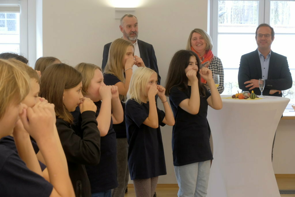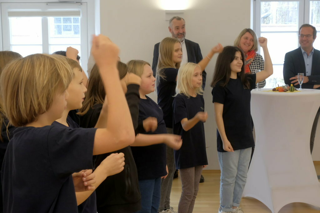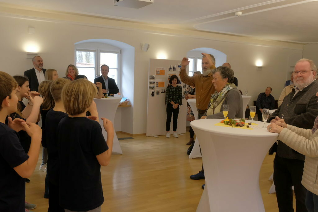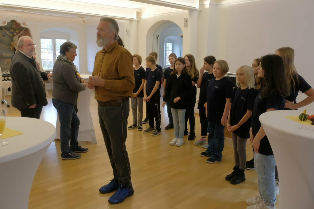 Zu einer Jubiläumsfeier gehört auch ein Schuss Kultur. Dafür sorgten die Sängerinnen und Sänger der fünften Klasse des Salvatorkollegs mit ihrem Musiklehrer Michael Klein. Mit dem viersprachig gesungenen Lied vom „Bruder Jakob“ (auf deutsch, Französisch, englisch und polnisch) würdigten sie auch das Engagement für Völkerverständigung der Ehrenamtlichen in den Partnerschaftsvereinen. Beim zweiten Mal als Canon sang der ganze Saal inbrünstig mit.