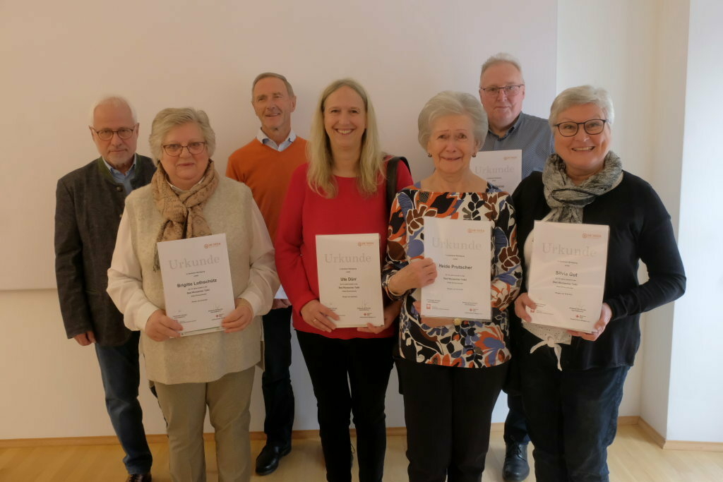 Sieben Tafelmitarbeiter sind von Anfang an dabei. „Es ist ein wichtiges Ehrenamt, einfach bemerkenswert und toll was Sie da leisten,“ sagte Christopher Schlegel der zweite Geschäftsführer bei der Urkundenübergabe. Von Anfang an dabei sind Silvia Gut, Brigitte Lothschütz, Ute Dürr, Heide Prutscher, Otto Eberle, Peter Depfenhart und Anton Heine.