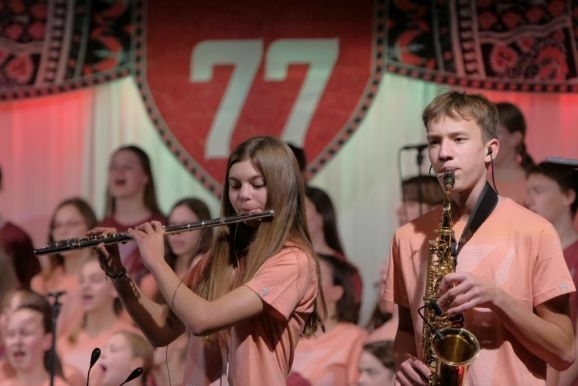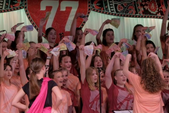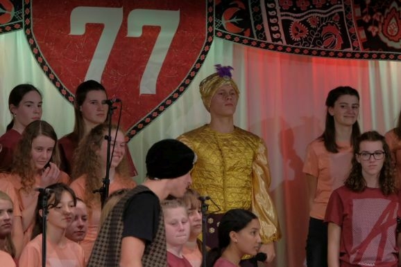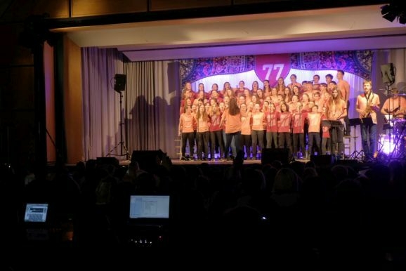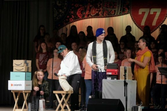 Warum heißt das Musical 77? In der Bibel ist die Zahl sieben eine heilige Zahl. 7 mal 70 oder 7+70 (je nach Übersetzung) sooft sollst Du vergeben. Es geht nicht ums Geld, wie es in unserer heutigen Gesellschaft leider viel zu häufig der Fall ist und die in vielfacher Weise „auf Pump“ lebt. Es geht bei dieser Geschichte um unendlich viel mehr, nämlich um Vergebung der Menschen untereinander. „Wie Gott mir, so ich Dir,“ lautet daher der nicht zufällig gewählte Untertitel für das diesjährige Adonia- Musical, das die rund 70 jungen Mitwirkenden in Chor und Live-Band in so bravouröser Weise auf die Bühne des Kurhauses brachten.