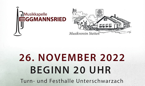 Unterschwarzach - Am Samstag, 26. November, findet um 20.00 Uhr in der Turn- und Festhalle Unterschwarzach ein Gemeinschaftskonzert des Musikvereins Eggmannsried mit dem Musikverein Stetten statt.