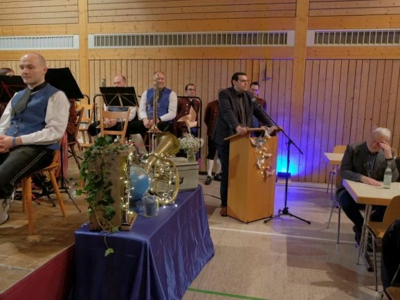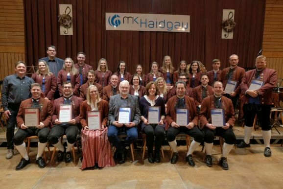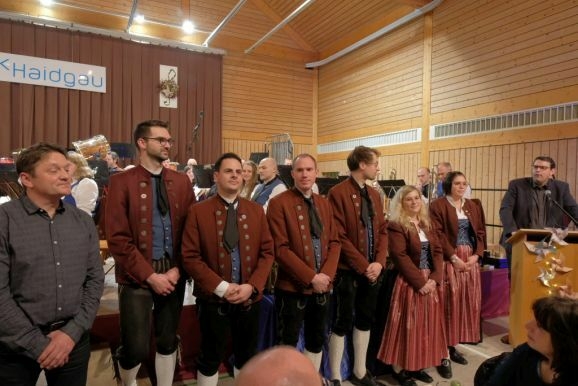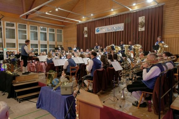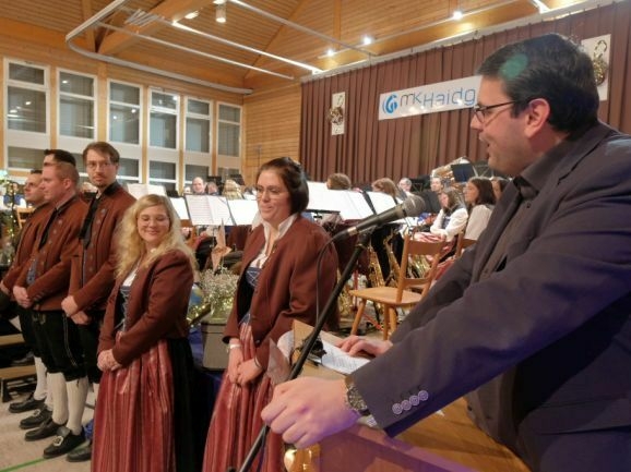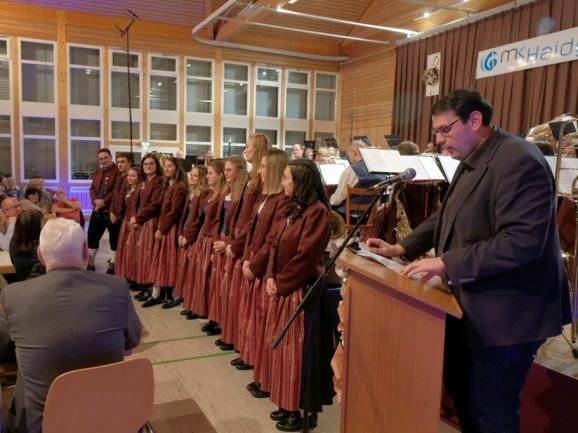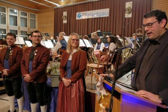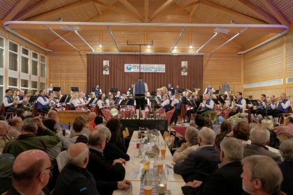 Vorstand Johannes Wirth freute sich in seiner Begrüßungsrede, endlich wieder vor einer vollbesetzten Halle zu stehen, in die neben Ortsvorsteherin Ernestina Frick und Pfarrer Patrick Meschenmoser, zahlreiche Ehrenmitglieder und Vertreter von Musikvereinen aus der Region gekommen waren. Besonders begrüßte er natürlich Klaus Wachter, den stellvertretenden Vorsitzenden des Kreisverbandes, der bis in den Mai hinein selbst musikalischer Leiter der Musikkapelle Haidgau gewesen war.