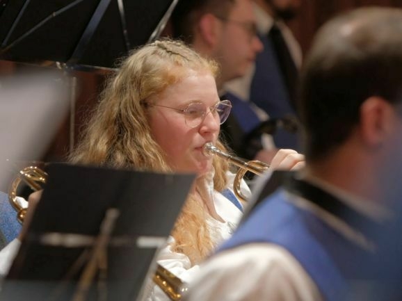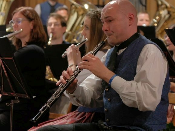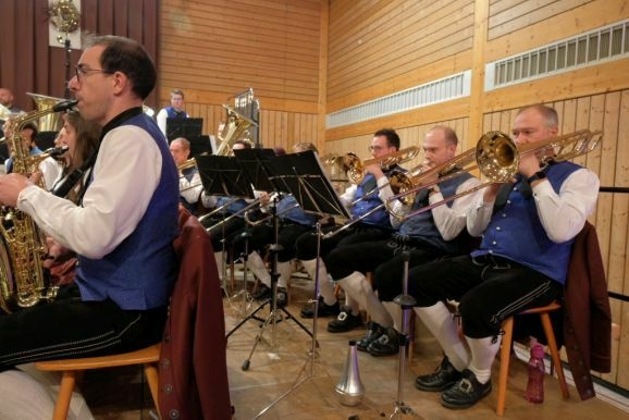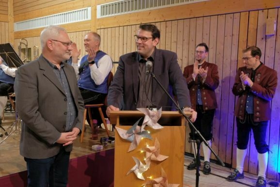 An den Schluss des Konzertes hatte Alexander Werner mit „Symphonic Rock“ von Gilbert Tinner noch einen echten Kracher gesetzt. In dem Medley kombiniert Tinner mit den Hits Innuendo – A kind of magic – Radio Gaga – We are the Champions – That´s all die Musik von Queen und Genesis zu einem wahrhaft symphonischen Cocktail. Kein Wunder, dass die begeisterten Zuhörer lautstark Zugaben einforderten. Dafür bekamen sie dann die Polka „Ehrenwert“ – geschrieben von Martin Scharnagl von „Vierablech“ serviert. Und dazu – an der Schwelle zum Totensonntag – das berührende, von Martin Scharnagl für das Woodstock der Blasmusik 2019 neu arrangierte, „Von guten Mächten“ nach dem geistlichen Gedicht des evangelischen Theologen Dietrich Bonhoeffer.