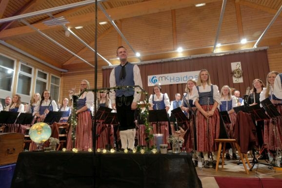„Blas´ Musik in the Welt“ ist ein neuer Marsch, geschrieben von den Söhnen Martin und Stephan von Ernst Hutter, dessen Uraufführung beim „Egerländer Livestream Festival“ stattfand und der (fast) als Imperatives Motto des Konzertes diente. Mit diesem starteten die Haidgauer Musiker schwungvoll in den zweiten Konzertteil, in dem mit dem Filmmelodienmedley zu dem Zeichentrickfilm „Kiki´s Delivery Service“ des Japaners Joe Hisaishi noch einmal große Herausforderungen auf die Musiker warteten.