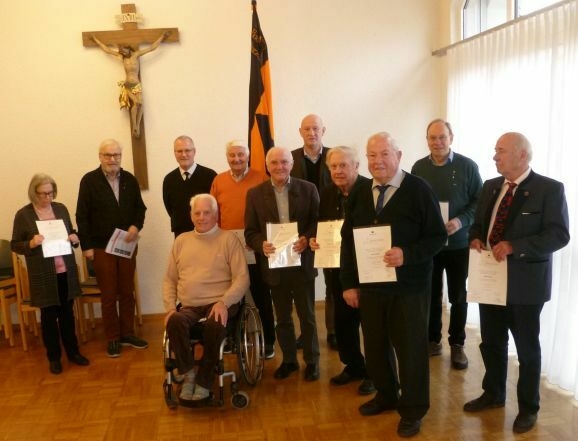 Für 65 Jahre Treue zum Verband durfte der Vorsitzende an Josef Schranz, Herbert Uhl, Hansjörg Kloos und Frieder Rothenhäusler Urkunden verteilen. Als junger Geselle war Alois Fimpel auf Wanderschaft und ist nun schon 70 Jahre im Kolpingwerk treues und zuverlässiges Mitglied gewesen; gerne nahm er diese Ehrung entgegen.