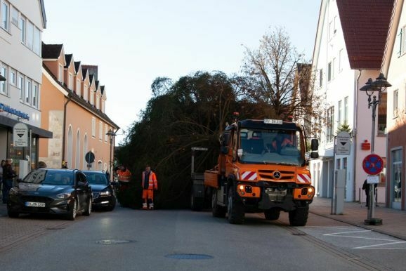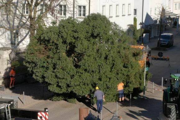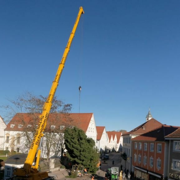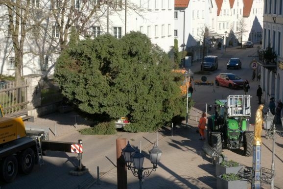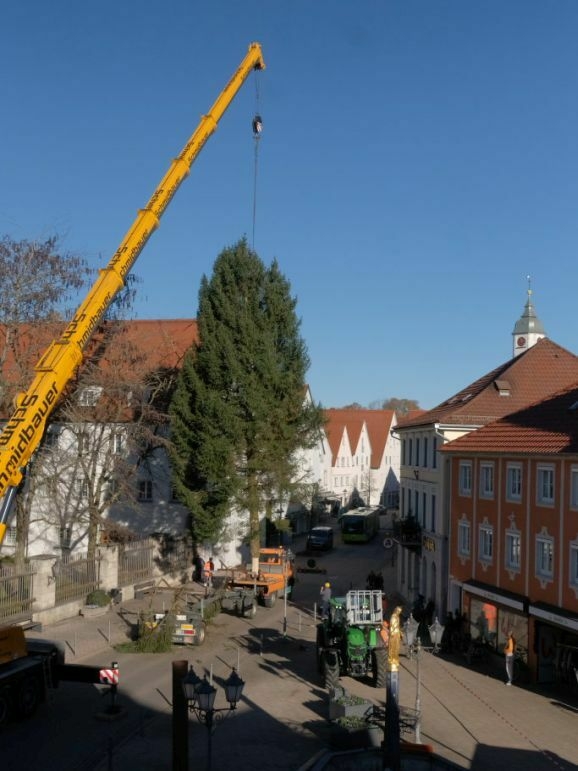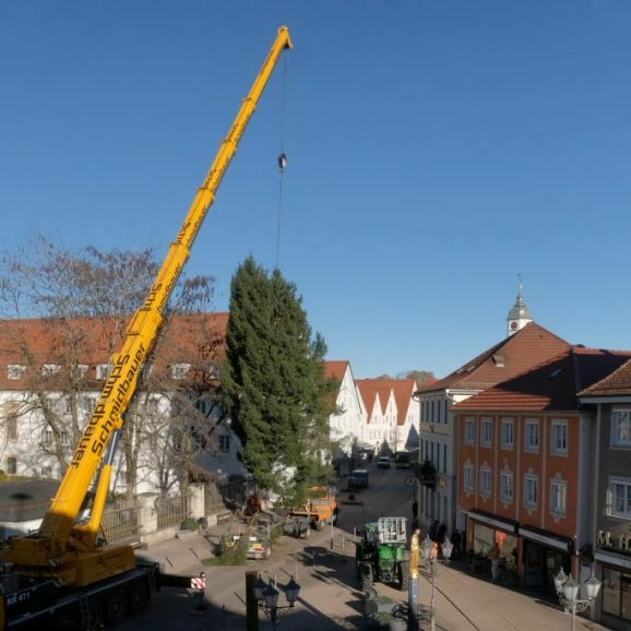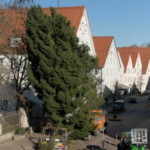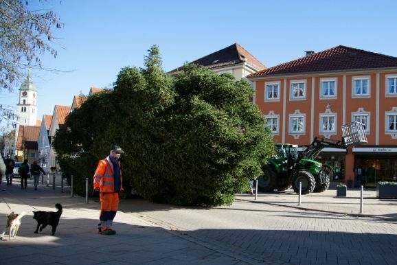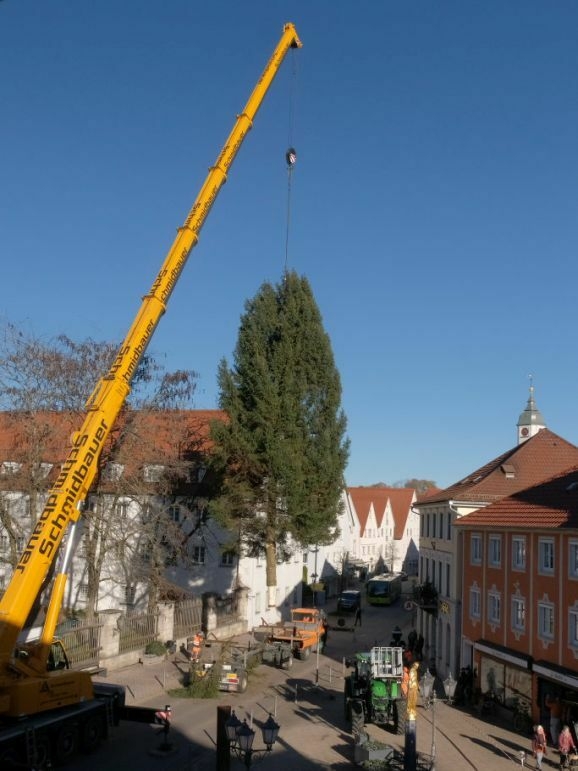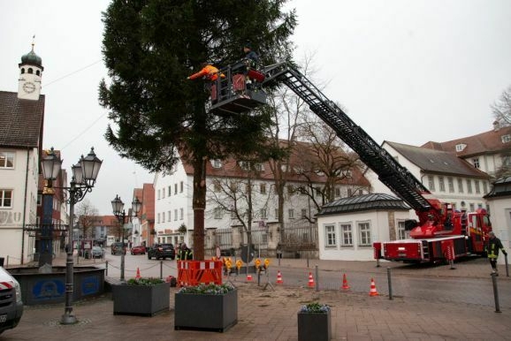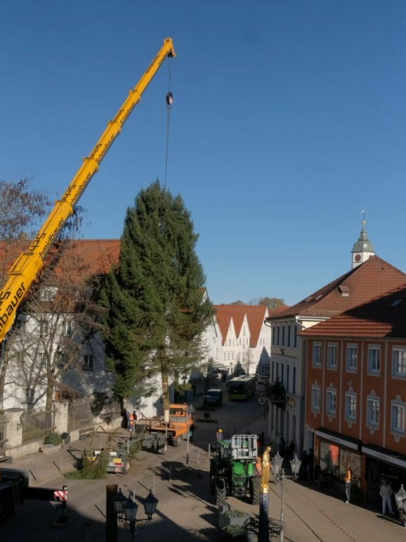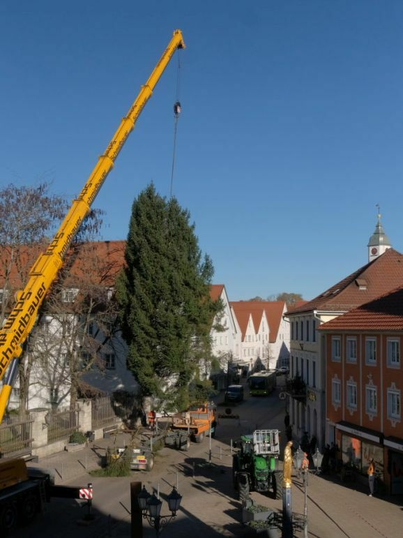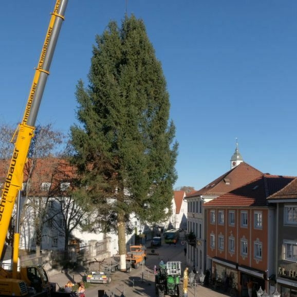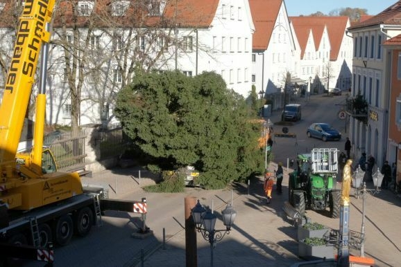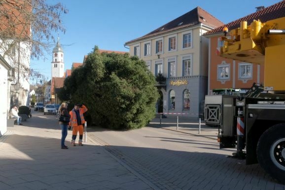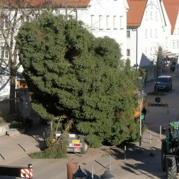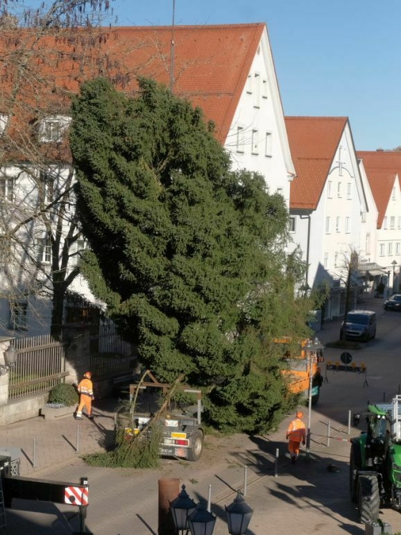 Bad Wurzach - Die große Fichte, die in diesem Jahr als großer Christbaum in der Stadtmitte steht, stammt erneut wie diejenigen der beiden Vorjahre von einem städtischen Grundstück: Sie wurde vor etwa 45 Jahren unweit des vor wenigen Jahren bei der Verallia gebauten Kreisverkehres an der L314/ B 465 quasi als Lärmschutz für die Siedlung im Verbund mit mehreren anderen Fichten angepflanzt.