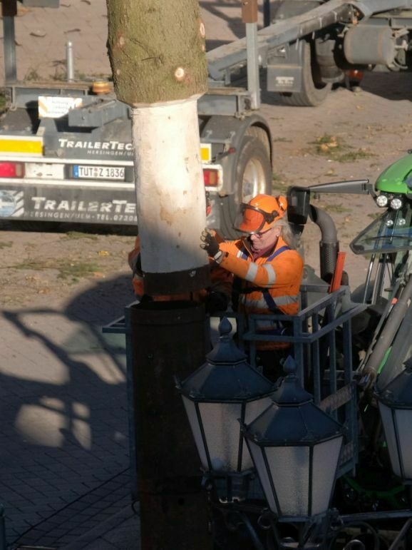 Mit fingerdicken Stahlseilen wird der Baum an den umliegenden Gebäuden so fixiert, dass ihm bis nach Dreikönig kein Wintersturm etwas anhaben kann. Die Stadtelektriker werden diesem wie dem Baum auf dem Klosterplatz, rechtzeitig vor dem am Wochenende auf dem Klosterplatz stattfindenden Weihnachtsmarkt den entsprechenden festlichen Lichterglanz verleihen.