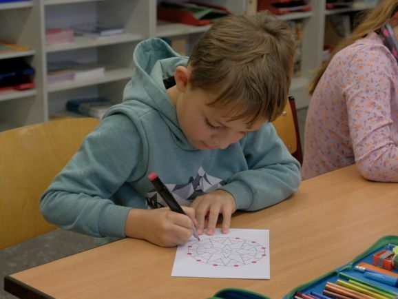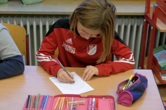 Schulleiterin Elena Wild freute sich darüber, dass die Kinder der Klasse 3/4 an diesem Morgen wieder so konzentriert und ruhig ihre kleinen Kunstwerke bemalen. Susanne Baur, die Gemeinwesensarbeiterin und Kopf der Aktion Herz und Gemüt, sei im Oktober an sie herangetreten, ob sie bei der Aktion Wunschbaummandalas mitmachen wollten. „Wir hatten in der Vergangenheit schon oft mit Frau Baur zu tun, etwa bei den Spielenachmittagen mit den Senioren, so wie vor drei Wochen.“